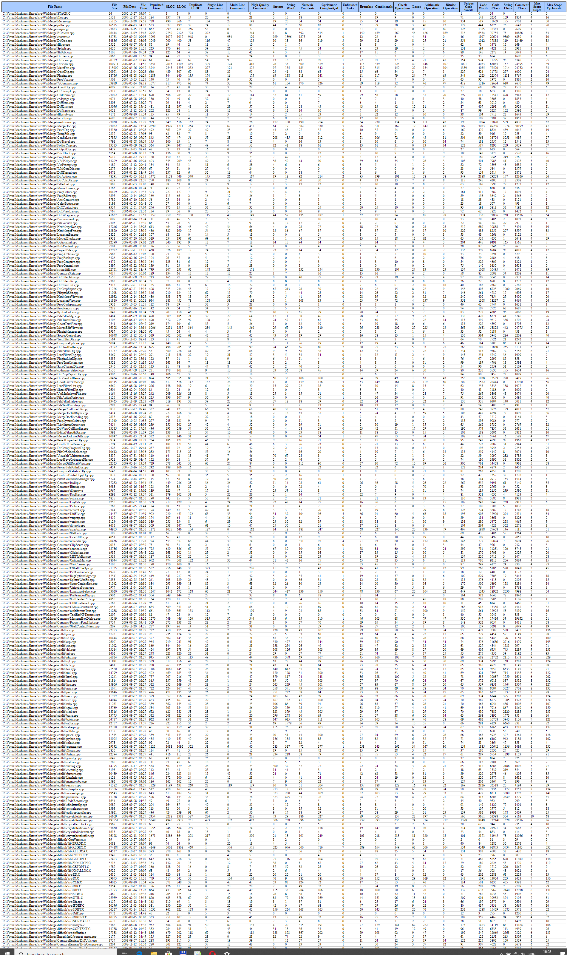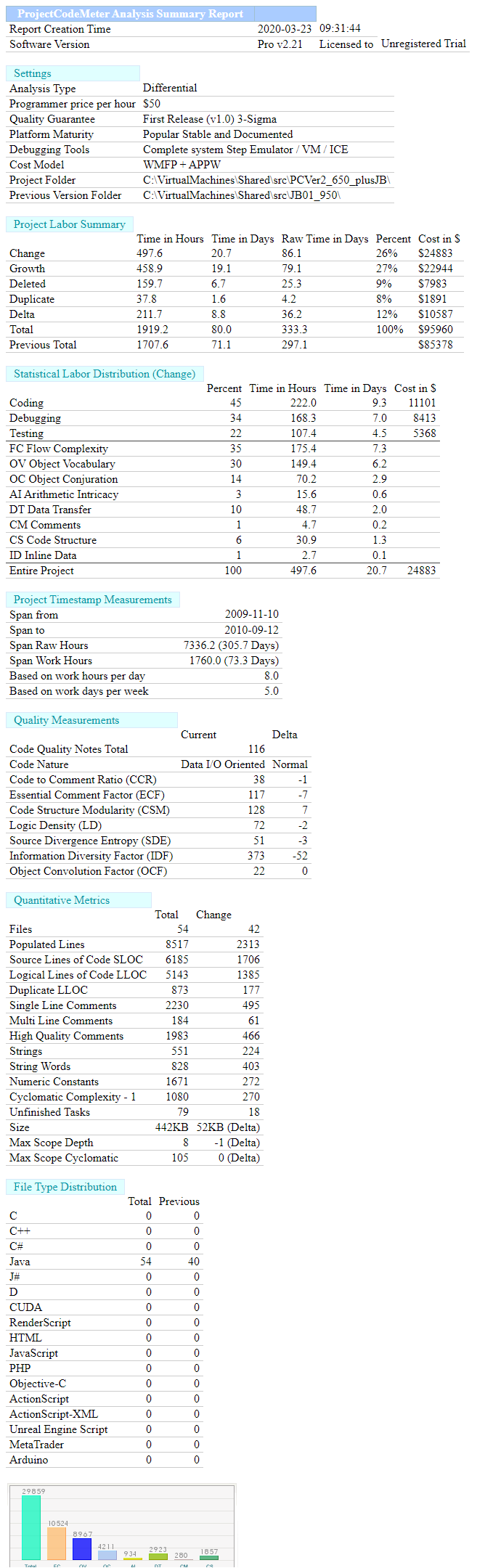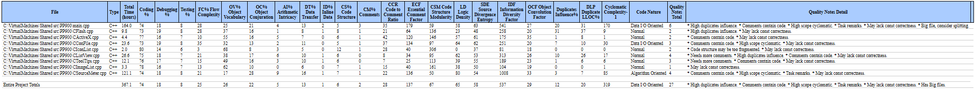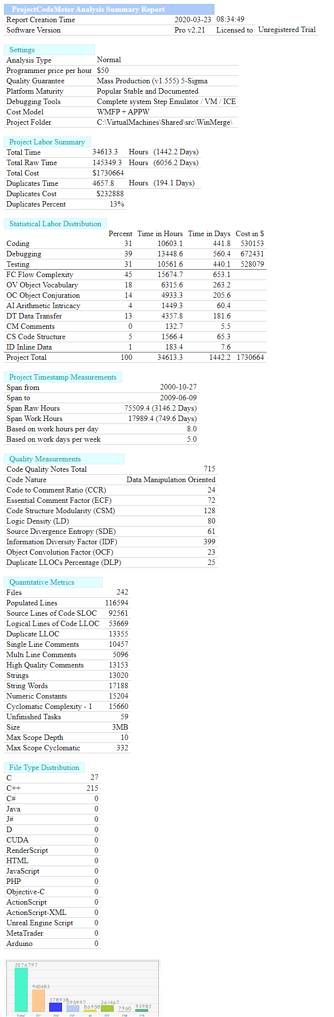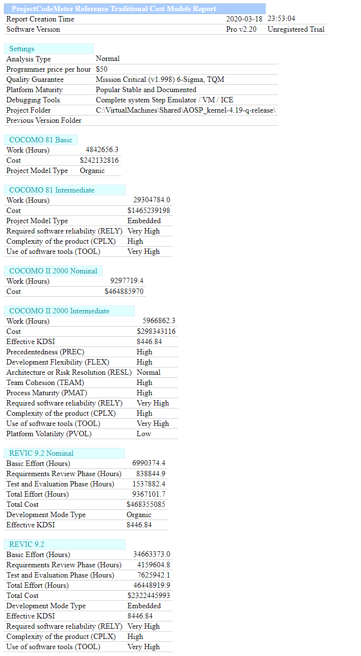 ProjectCodeMeter has several built-in reports and a Configurable Report Template Engine for generating Custom Reports. Using the Report Template Engine one can create reports of almost any format, The built-in reports are generated in